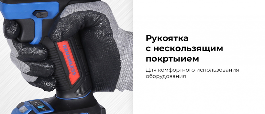 - Удобная рукоятка с нескользящим покрытием обеспечивает комфорт при работе одной рукой;