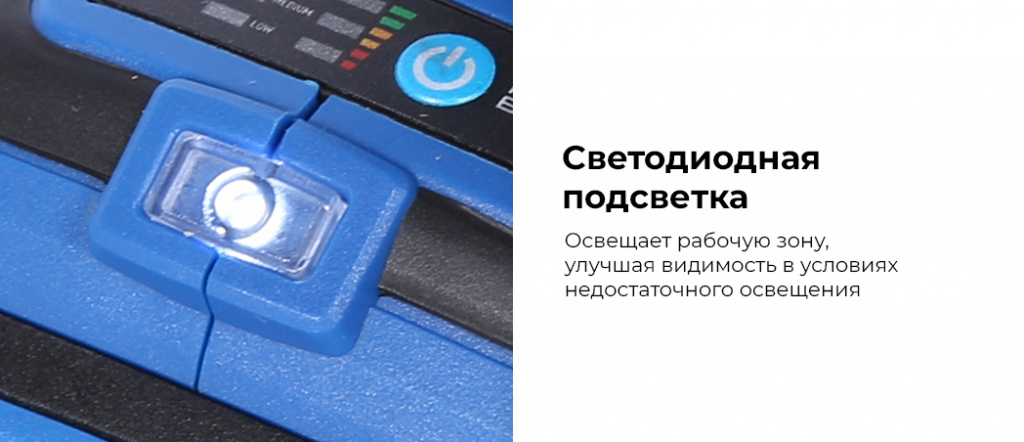 - LED-подсветка освещает рабочую зону, улучшая видимость в условиях недостаточного освещения;