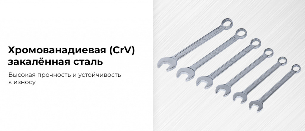 - Хромованадиевая (CrV) закалённая сталь — высокая прочность и устойчивость к износу;