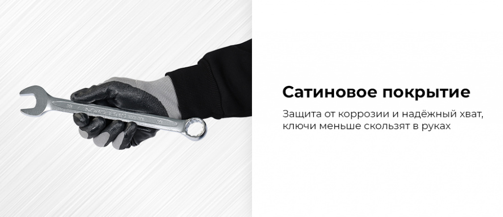 - Сатиновое покрытие — защита от коррозии и комфортный надёжный хват, ключи меньше скользят в руках;