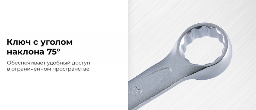 - Ключ с уголом наклона 75° — обеспечивает удобный доступ в ограниченном пространстве;