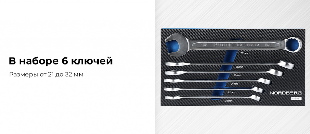 NORDBERG 10206T — набор накидных ключей в ложементе 6 шт. Предназначен для быстрого монтажа и демонтажа крепёжных элементов. В набор входят ключи основных типоразмеров, позволяющие эффективно выполнять широкий спектр задач.