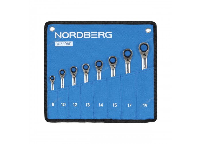 NORDBERG 103208P — набор трещоточных ключей с флажковым механизмом 8 шт. Предназначен для быстрого монтажа и демонтажа крепёжных элементов. В набор входят ключи основных типоразмеров, позволяющие эффективно выполнять широкий спектр задач.
