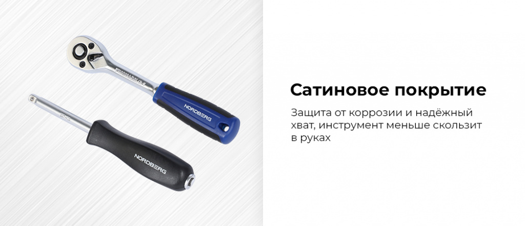 - Сатиновое покрытие — защита от коррозии и надёжный комфортный хват, инструмент меньше скользит в руках;